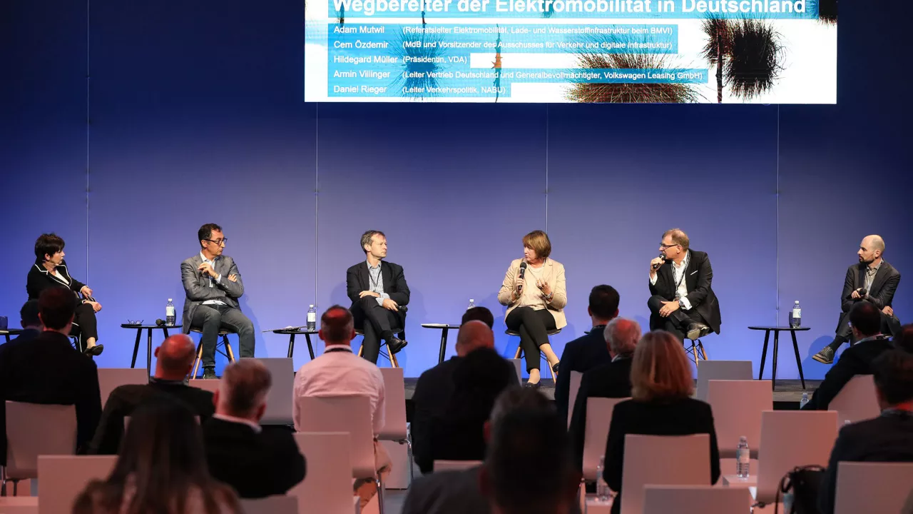 At the latest during the final discussion, the full complexity of the picture when looking at e-mobility and the changes in mobility showed itself. Cem Özdemir, Member of the German Bundestag for Alliance 90/The Greens and Chairman of the Committee on Transport and Digital Infrastructure in the Bundestag, appealed to the capacity for transformation in the auto industry and criticized the partial devotion to the combustion engine: "The matter is settled. E-mobility will come. The German automotive industry should not cling to old technologies. After all, we all know what happened to companies like Nokia and Telefunken, who failed to recognize the dominant trends." Hildegard Müller, President of the German Association of the Automotive Industry (VDA), agreed in principle with his statement, but also stressed: "The entire industry is under great pressure. That applies to a lot of the component suppliers as well." Daniel Rieger, Head of Transport Policy at NABU, criticized the plug-in hybrid vehicle: "It turns out that the environmental balance of plug-ins is anything but good. Politicians should make adjustments to the financial incentives in this area. Because , ultimately, the question is how much climate protection are taxpayers getting for their money." Armin Villinger put this criticism into perspective: "In its role as an entry technology into e-mobility, we should not demonize the plug-in hybrid. Instead, we should sensitize drivers to use the technology correctly. There are lots of scenarios in which the plug-in hybrid – if used correctly – can play out its strengths. The new generation of vehicles with their higher ranges in electric mode will further substantiate their merit."